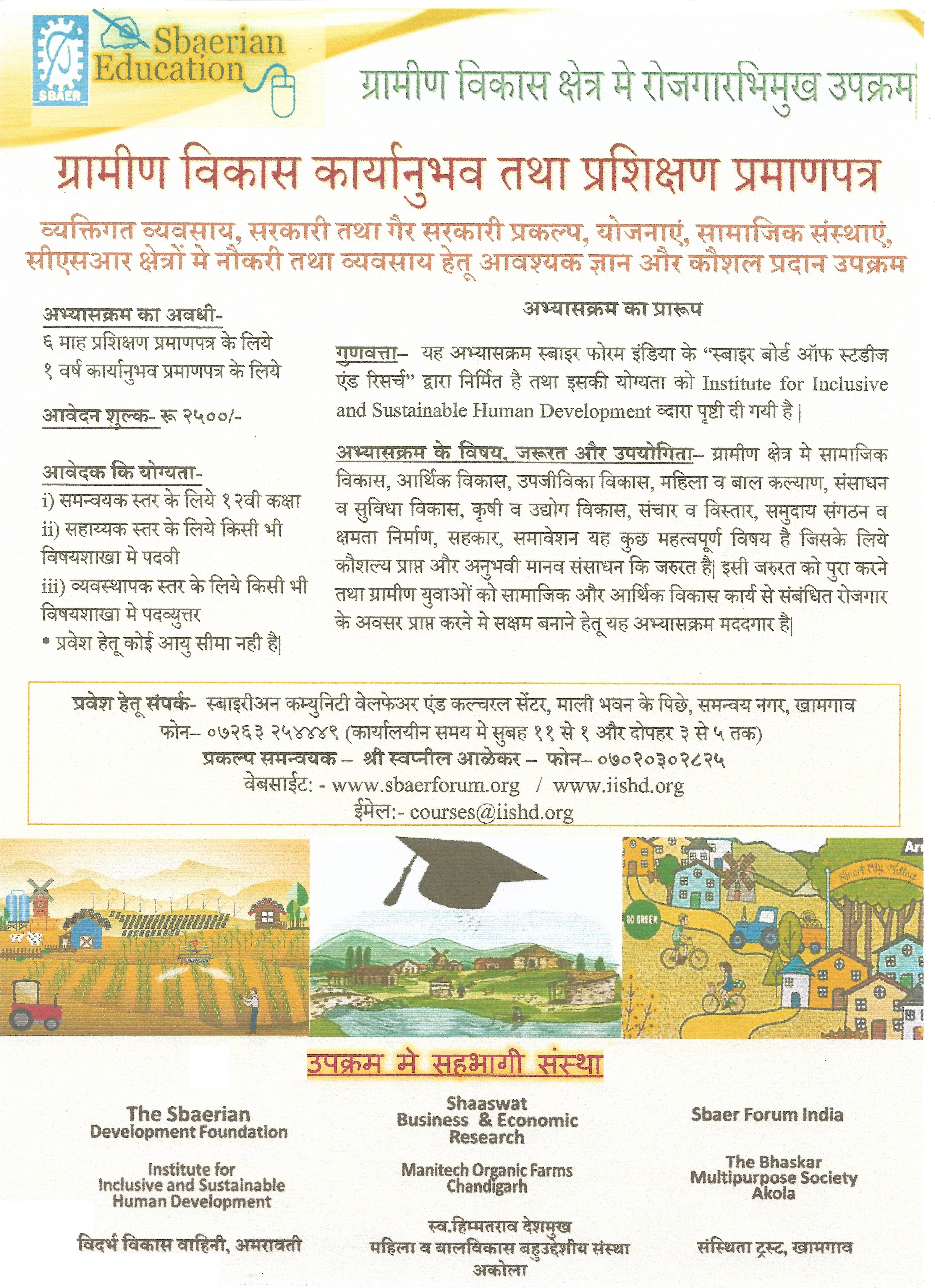 Under its Regional Development Initiative, the Maharashtra Chapter of Sbaer Forum is implementing an intervention for Sustainable Yield Enhancement of Farmers and Rural Artisans in Amravati Division of the State. The candidates from this region can apply for this employment linked training programme.